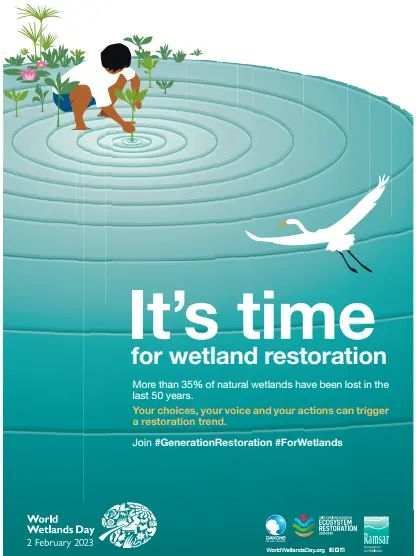 世界濕地日旨在提高公眾對濕地為人類和地球所做貢獻的認識,促進采取行動,以保護、明智地利用和恢復濕地。
